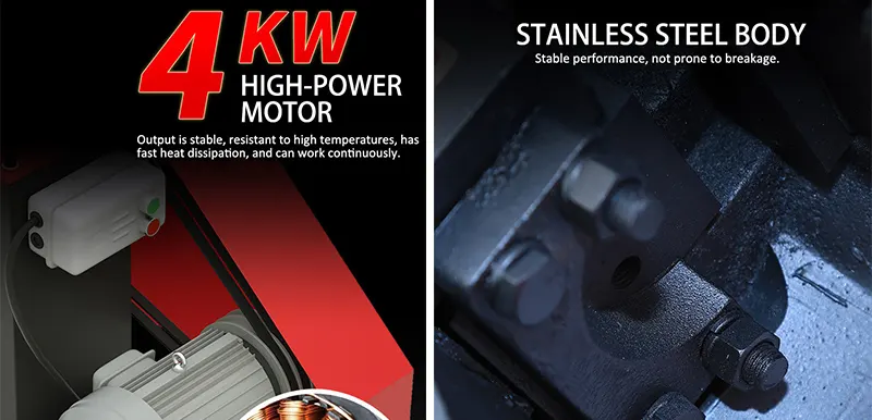 Die 4KW 38-mm-II-Stahlstangenschneidemaschine ist mit einem 4-kW-Motor für Industriequalität ausgestattet und mit hochfesten Legierungsstahlblättern oder Diamantschleifenrädern kombiniert. Mit seiner hohen Rotationsgeschwindigkeit kann es leicht harte Materialien wie Gewindestahl und runder Stahl schneiden und glatte Schnitte ohne Burrs hinterlassen. Darüber hinaus integriert es Sicherheitsvorrichtungen wie spritzsichere Wachen, Notbremsung und Überlastschutz.