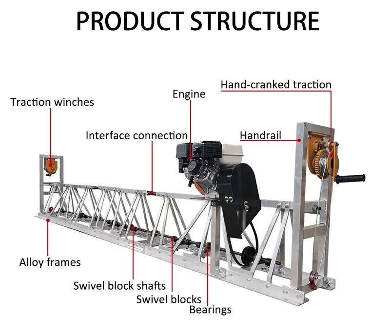China Herstellung 6m Betonboden Aluminium Vibrationsbinder -Estrichmaschine mit Benzinmotor mit stetiger Vibration der Antriebsmaschine, starker Leistung und geringem Geräusch.